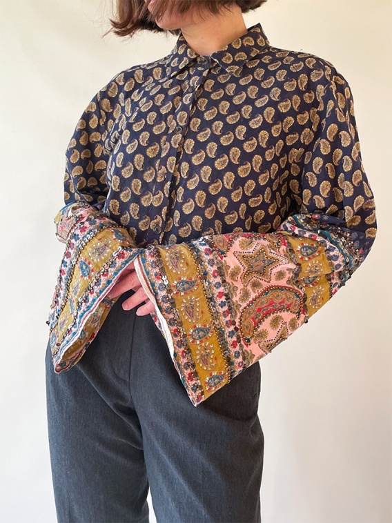 Bawełniana, pikowana, gruba koszula we wzór paisley. Kolorowe rękawy z rzędami cekinów.