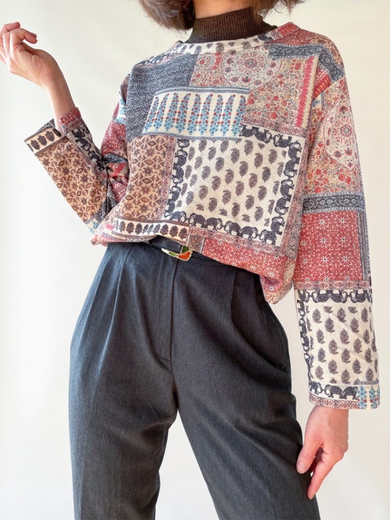 Pastelowa bluza w słonie, pełna wschodniej ornamentyki.