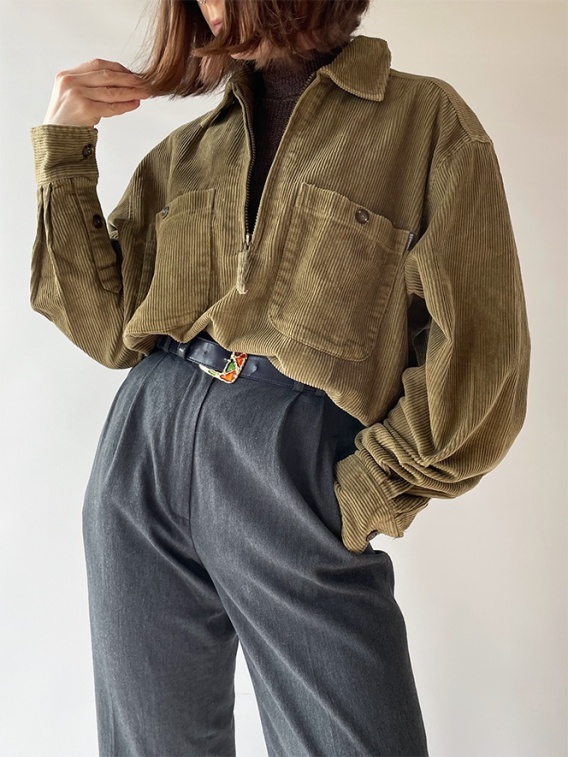 Kurtka w kroju zbliżonym do anoraka, wykonana ze sztruksu w kolorze khaki.