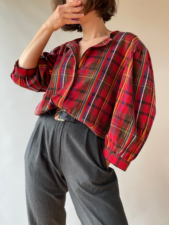 Bawełniana koszula w świąteczną kratkę. Rękaw 3/4.
