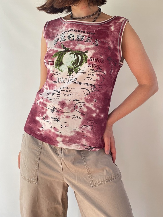 Bordowo-fioletowa bluzka z brzoskwinią i napisami o miłości do brzoskwiń xD