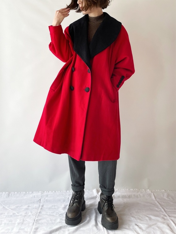 Czerwony płaszcz z wełny