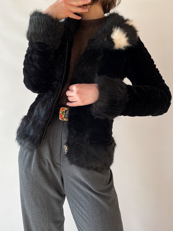 Czarno-biała dopasowana kurteczka ze sztucznego futra. Śliczny kołnierz, zasuwana na zamek, z metki S ale lepsza będzie na XS.