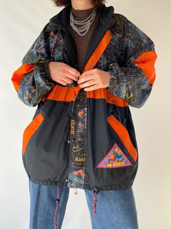 Przeciwdeszczowa kurtka dla rowerzystów, a na pewno pełna okołorowerowych motywów. Ma kaptur. Na dole ściągana ładnym, kolorowym sznurkiem.