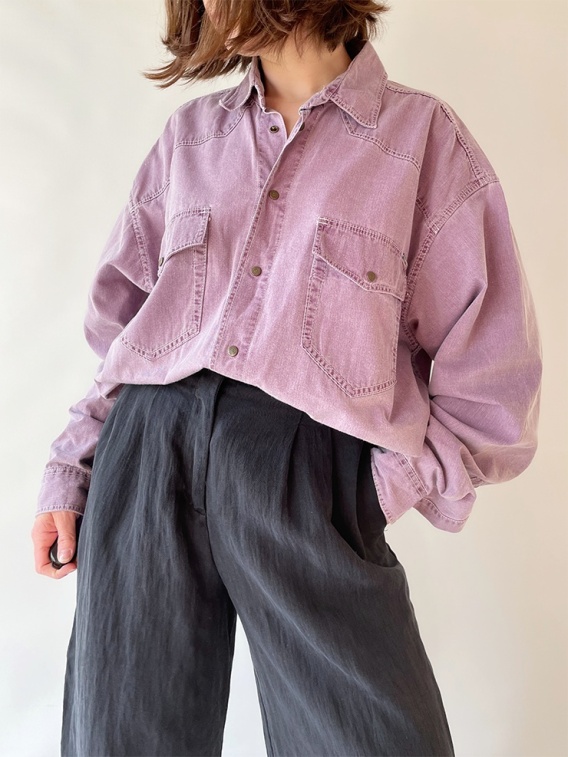 Koszula Mustang, na zatrzaski, w idealnie wypośrodkowanym kolorze fioletowo-różowym. Małe przebarwienie na kołnierzu, poza tym bez zarzutu. Dosyć cienki jeans.