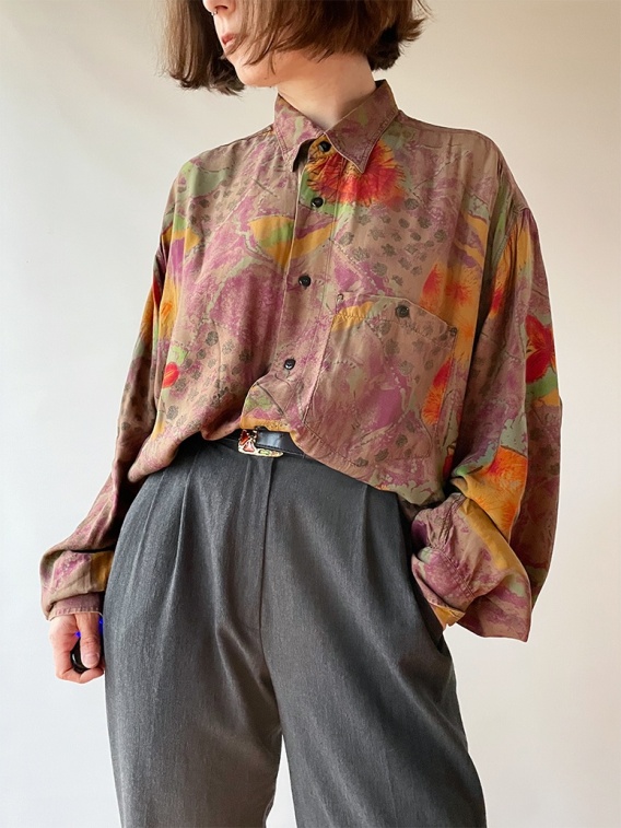 Koszula w duże kwiaty. Delikatny, wiskozowy materiał. Drobna wada na ostatnim zdjęciu.