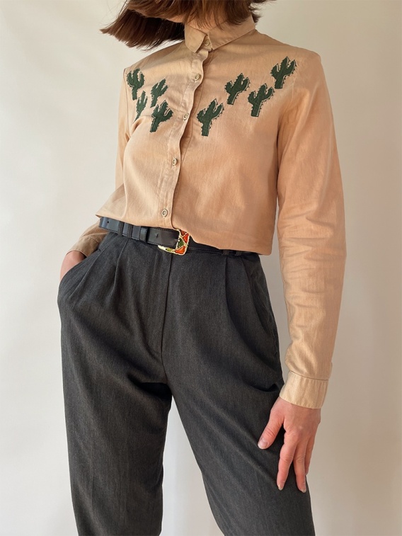 Bawełniana koszula w naszywane na piersi kaktusy. Drobne wady na ostatnich zdjęciach.