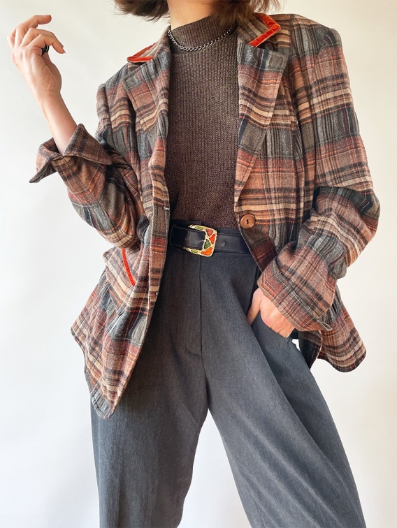 Ciekawy skład - 59% wełna, 16% nylon, 13% poliester, 11% bawełna, 1% elastan. Podszewka z wiskozy.