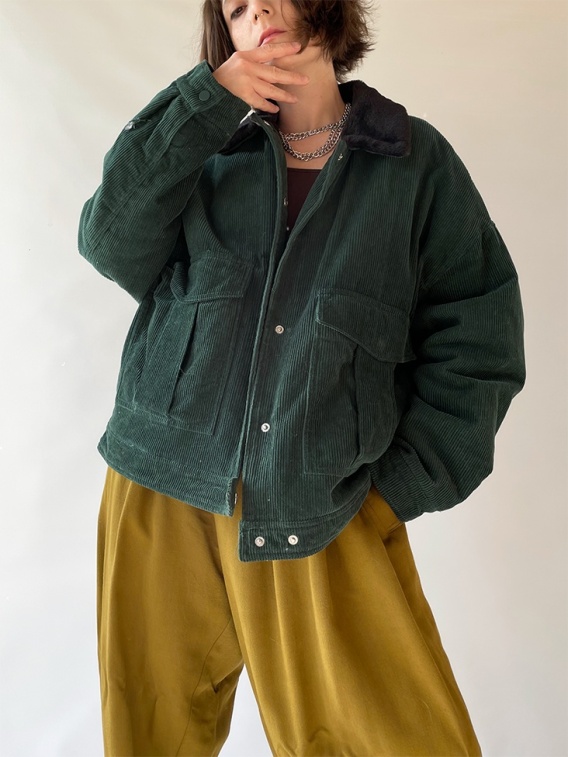 Ciemnozielona katana ze sztruksu. Denim Co. Ma ocieplenie i pikowaną podszewkę. Przyjemny kołnierzyk ze sztucznego futra.
