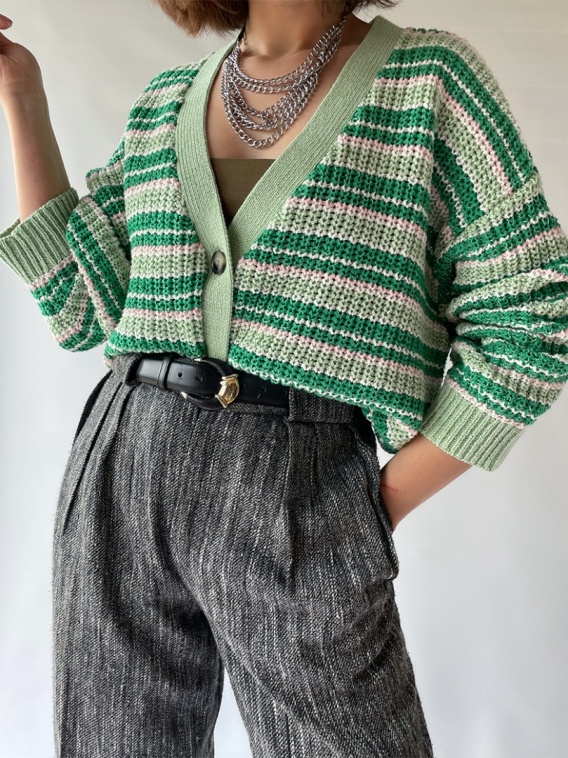 Biało-zielony sweter na guziki marki Gina Benotti.