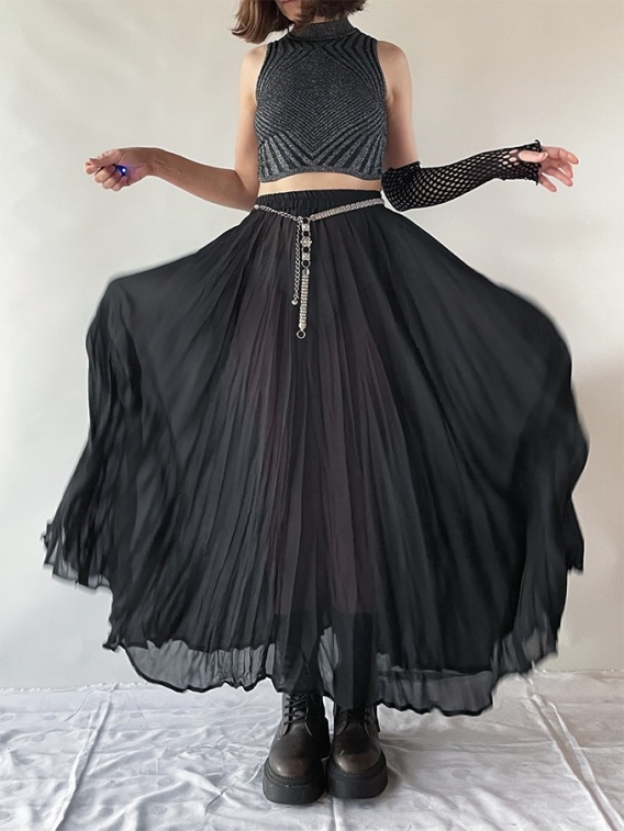 Zwiewna i lekko transparentna spódnica z poliestrowego szyfonu. Mają gumkę w pasie i drobne przebarwienie w dolnej części - znika w masie materiału (ostatnie zdjęcie).